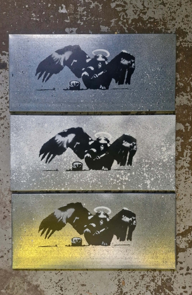 Medium: Hand Cut Spray Painting on a metal shelf that once held something ordinary.
